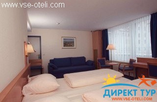 Обновлен в 2002, году отель включает 71 номер с 4 люксами, всего 6 этажей. Среди удобств вы найдете фойе с лифтом, 24-х часовую рецепцию, сейф, гардероб, лифт, пункт обмена валют, ресторан с баварскими блюдами, Интернет доступ, парковка, хранение велосипедов и гараж. Для молодых гостей предлагается детский клуб. Можно воспользоваться услугами прачечной и обслуживанием в номере (доп.плата).