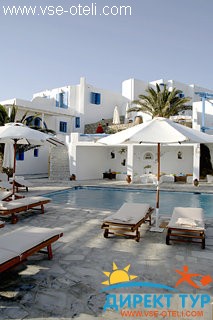 Гостиничного типа собственности состоит из набора небольших белых зданий установлены на хорошем положении, большой кусок земли. В отеле всего 27 стандартных номера, номера повышенной комфортности, 2-спальные апартаменты семьи (мезонеты), а также 2 больших апартаментов люкс. Услуги включают в себя холл с рецепцией, таверна (который также используется в качестве завтрака), игровой зал и ресторан. Существует также детская площадка для маленьких гостей, а также маленькая церковь, Agios Фармуфия для свадебных торжеств.
