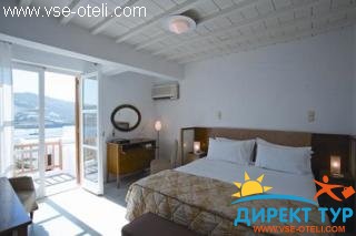 Основное здание включает в себя просторный, светлый и стильный салон, комната для завтрака, бар и конференц-зал на первом этаже, все с видом Ornos залив и город Миконос.
