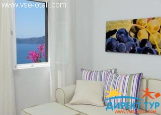 Построенный в 2008 году, это полный гостиничный сервис вырезан в драматических черно пород лавы Санторини вулканических обода, с видом на кальдеру, Сан - Антонио. Вдохновляющим апартаменты уютно, пещеры коконов с непрерывным просмотров ярко-синий Эгейского моря. Отель предлагает следующие услуги: Часовня, сейфы, парковка, конференц-зал, два раза в день женское обслуживание, баров и таверн.