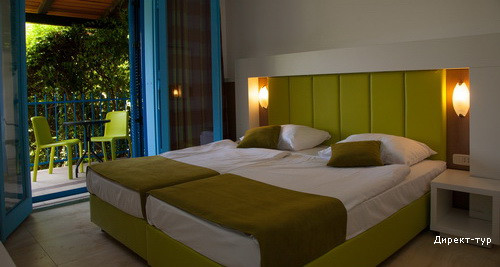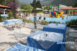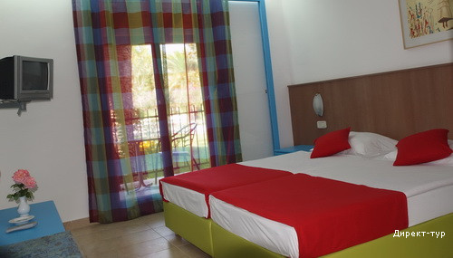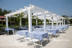 All inclusive (10:00-23:00): завтрак, обед, ужин – шведский стол, местные напитки в неограниченном количестве (пиво, вино, соки, минеральная вода, пирог в 16:00, 1 час тенниса в неделю бесплатно на номер, водный велосипед, детская площадка, аэробика, школа плавания, детская дискотека.Пляж: