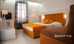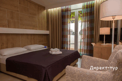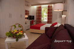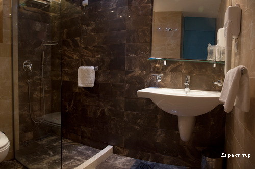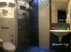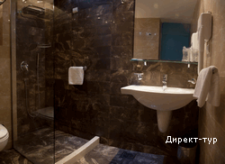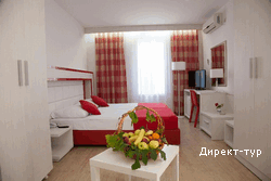 Номера 4*: около 18м2, французская кровать или две односпальные кровати, сейф, радио-будильник, кабельное ТВ, Wi-FI, холодильник, кондиционер, ванная комната с душевой кабиной, фен