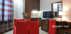кондиционер, ТВ, телефон, холодильник, мини-кухня. В апартаментах 4* - нет мини-кухни.