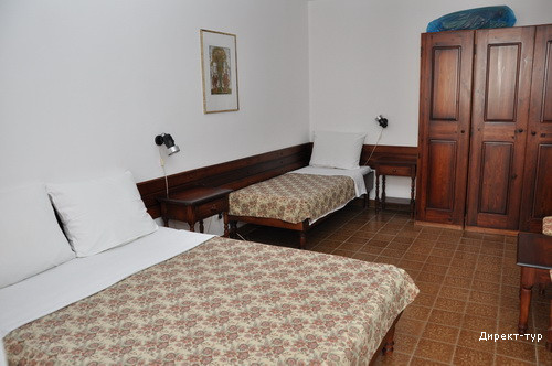 (ширина ? 150см) и отдельная кровать, в ванной – фен, душевая кабина. Вид на улицу. Мин. размещение – 2 чел.