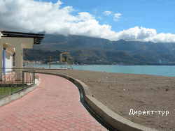 собственный, мелкогалечный. Зонтики, лежаки и пляжные полотенца бесплатно для гостей отеля.