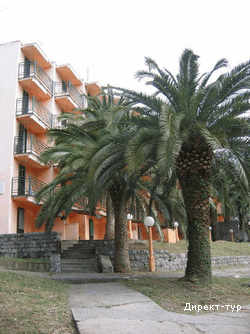6 корпусов; 200 номеров, 2 спортивные бетонные площадки, ресторан (шведский стол) и ресторан "a la carte".