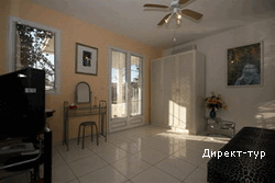 Однокомнатный апартамент рассчитан максимум на 3 человека, площадь 23 м2 + терраса 8 м2 с боковым видом на море. В номере - французская кровать на 2-х человек и раскладное кресло на одного человека. Полностью оборудованная кухня (плита, холодильник и набор посуды), ванна/туалет.