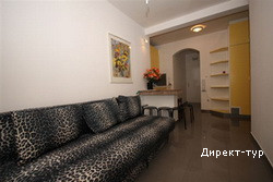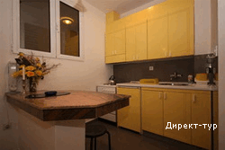 Однокомнатный апартамент рассчитан максимум на 2 человека, площадь 21 м2 + балкон 4 м2 с боковым видом на море. В номере французская кровать на 2-х человек. Полностью оборудованная кухня (плита, холодильник и набор посуды), душ/туалет.