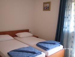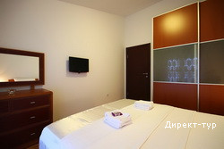 Две спальни: в одной - французская кровать, во второй - две отдельные кровати.