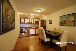 Апартаменты расположены в 50 м от отеля «Романов» и "Азимут", в 150 м от пляжа, в тихом спокойном месте в окружении зелени.