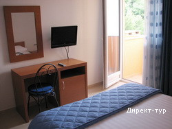 Все номера с новой мебелью, кондиционером, полностью оборудованной кухней, плазменным телевизором, душем (душевая кабина или ванная), феном, большинство с видом на море и остров Св. Стефан.