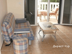 APP 02+1: 35 м2, кондиционер, телефон, ТВ, фен, оборудованная кухня, балкон 9 м2 с видом на море, гостиная с диваном, спальня с французской кроватью.