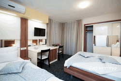 Во всех номерах: балкон/терраса, кондиционер, сейф, кабельное ТВ, WI-FI, телефон, мини-бар, ванная с душевой кабиной, тапочки, фен.