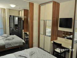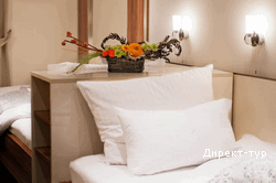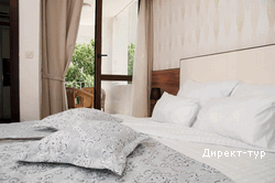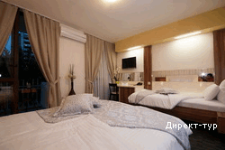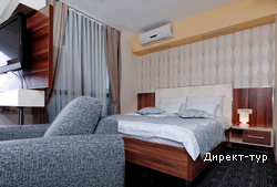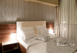двухместные, трёхместные номера и апартаменты, ресторан, летняя терраса. Отель имеет две категории номеров: superior (улучшенные) номера и апартаменты, которые соответствуют уровню 4*, и стандартные номера и апартаменты. Дизайн интерьера всех номеров супериор отличается красотой и элегантностью, мебель тёплых тонов, лучшее постельное бельё, качественная туалетная косметика.