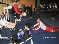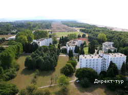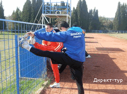 Рядом с отелем большое количество спортивных площадок: футбольное поле с беговыми дорожками, площадка для минифутбола, площадки для игры в волейбол, баскетбол, закрытый теннисный корт, полигон для метания ядра, место для тренировок прыжков в длину.