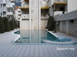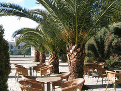 В 150м от гостиницы, муниципальный мелко-галечный пляж. Лежаки и зонтики – платно. На пляже находятся водные горки, есть возможность взять напрокат катамараны.