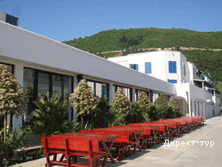 В 50м от гостиницы, муниципальный мелко-галечный пляж. Лежаки и зонтики – платно. На пляже находятся водные горки, есть возможность взять напрокат катамараны.