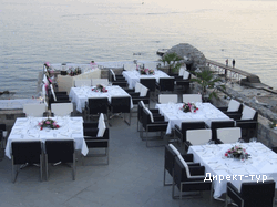 20 метров, отель имеет частную пляжную зону Ричардова Глава (бесплатный вход). В 100 м от гостиницы, за скалой находится самый красивый мелко-галечный пляж Будвы – Могрен (вход на пляж – 1 евро\день, лежак – 5 евро, зонтик – 3 евро). На пляже находятся несколько ресторанов. Предлагаются водные виды спорта.