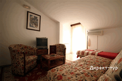 В STD: Французская кровать, кондиционер, кабельное телевидение, холодильник, ванная комната, фен.