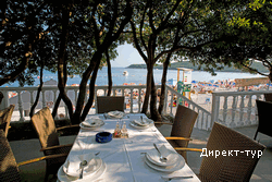 Пляж Яз состоит из двух частей: мелко-галечной – длинной 500м и песчаной – 300 м. Вилла располагает собственным пляжем (протяженностью 100 м) с бесплатными зонтами (шезлонги – за доплату). На пляже: аренда скутеров и катамаранов, бары, кафе. Рядом с Язом находится небольшой пляж для нудистов. Гости отеля могут швартовать собственную лодку перед виллой.