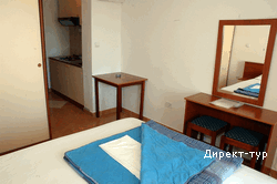 В отеле 21 двухместных и 4 трехместных студио. Работает на базе завтраков и полупансиона. В отеле есть рецепция, доступ к интернету, парковка, летняя терраса, бар. Check in – 12:00, check out – 10:00. Рядом с отелем находится аквапарк, аптека, рестораны национальной кухни Stari Hrast, на пляже можно отведать блюда с пиццерии Azurro и ресторана Maxim. В 15 минутах ходьбы находится дискотека Mojito.