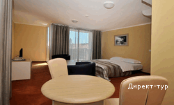 В FAMILY 2+2:Спальная с французской кроватью, гостиная с раскладным диваном, два балкона, мини бар (платный), сейф (бесплатный), кондиционер, кабельное телевидение, прямая телефонная линия, доступ к интернету, фен для волос, ванная.