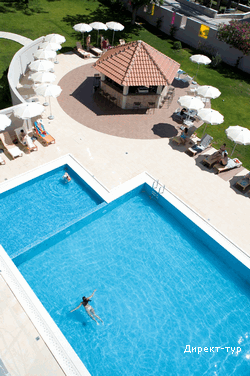 основной ресторан (шведский стол), аперитив бар, бар около бассейна. Checkin – 12:00, checkout – 10:00. При гостинице: открытый бассейн, фитнес комната (бесплатно), спортивная и детская площадка, бильярд, настольный теннис, парикмахерский салон, конференц-зал, интернет-центр (бесплатный доступ к интернету с личного ноутбука), парковка. Отель идеально подходит для семейного отдыха.