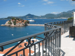 В 80 м от городского галечного пляжа (бесплатные пляжные полотенца, лежаки и зонтики – платно), напротив одного из знаменитых гостиничных комплексов страны, «Святого Стефана».