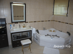 В PRESIDENTIAL SUITE: Гостинная с удобным гарнитуром, телевизор, DVD-система, столовая, кухня, бар, посуда на 12 персон, две спальни с французской и раздельными кроватями, кондиционер, сейф (бесплатный), кабельное телевидение, телефон, доступ к интернету, выход на террасу из всех комнат, вид на море, две ванные комнаты( в одной -душ с гидромассажем, во второй - джакузи), фен, косметика, халаты, тапочки, кимоно. Шампанское, фрукты – в подарок.
