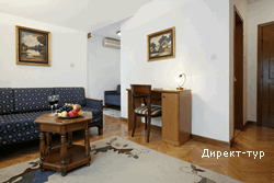 Спальня с французской кроватью, гостиная с раскладывающимся диваном, спутниковое телевидение (с русскоязычными каналами), сейф, мини-бар, кондиционер, Интернет, ванная комната (душевая кабина), фен, тапочки. Максимальное размещение - 4 человека.