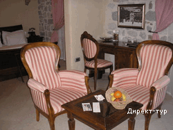 Номера находятся на последнем третьем этаже. Маленькие и уютные двухуровневые апартаменты, на втором уровне – французская кровать,на первом – гостиная зона. Один номер с джакузи, второй – с душем. Максимальное размещение - 2 человека.