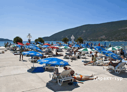 В 50 метрах от берега моря, "Обала" - общественный бетонный пляж длинной 150 метров и площадью около 2500 м2. Оборудован лежаками и солнечными зонтиками.