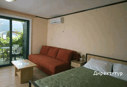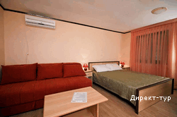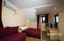 Французская и дополнительная кровати, кондиционер, телевизор, мини-бар, без балкона, вид на море, душ. Максимальное размещение – 2+1 или 2+2.