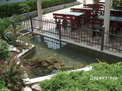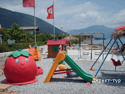 Собственный галечный пляж, оборудован шезлонгами и зонтами (два шезлонга+зонт – на номер). Детская площадка на пляже, стоянка для яхты (до 100 т).