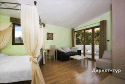 Все номера различаются по цвету декора. В отеле -3 оранжевых, 3 черно-белых, 3 красных, 4 синих, 4 зеленых апартамента, а также 4 апартамента Lux. В 2012 году построено основное здание в котором расположены номера superior. Работает на базе завтраков и полупансиона (шведский стол). Check in – 14:00, check out – 12:00. Основной ресторан (средиземноморская кухня) на 100 мест, ресторан a la carte (национальная кухня) на 40 мест с винным погребом, пиццерия, кафе, пляжный бар на 150 мест. Отель предлагает: открытый бассейн, массажные кабинеты, теннисные корты, спортивная площадка, маленький зоопарк, детская игровая площадка, фото-терраса, сувенирный магазин, амфитеатр, ночной клуб, парковка. Среди услуг: доступ к интернету, прачечная, room service, VIP-обслуживание. Отель подойдет для особо взыскательных клиентов, ценящих комфорт и уют.