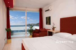 B SUPERIOR: Номера супериор находятся в новом здании (2012год). В номере- французская кровать и раскладной диванчик, кондиционер, телефон, кабельное телевидение, доступ к интернету, мини-бар (платный), сейф (бесплатно), терраса с видом на море, ванная, фен, косметика(27м2)/ Масимальное размещение- 3 человека.