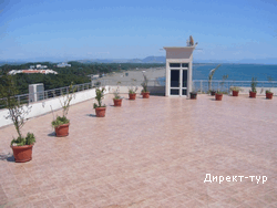на вилле 6 этажей, лифт, рецепция, ресторан находится на последнем этаже с панорамным видом на море. На 2-5 этажах находятся двух, трех и четырехместные номера, все номера с балконами и видом на море. На первом этаже находится два апартамента с кухней. Уборка номера и замена полотенец- каждый день. Замена постельного белья – 1 раз в 5 дней