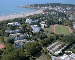 В 4 км от центра г. Ульцинь в сосновом парке, у моря, на самом известном пляже Черногории "Велика плажа". Расстояние до: Тиват -100 км, Подгорица -107 км, Дубровник -159 км. Последняя реконструкция в 2010 году. Большой современный отель создавался для размещения спортсменов олимпийского резерва, поэтому он идеально подходит для любителей активного отдыха.