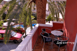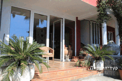 Вилла представляет собой трехэтажное здание с собственной парковкой. Закрытая территория, стол, лавочки, зеленый газон. На вилле два двухместных, девять трехместных и один четырехместный номер. Два номера без балкона. Уборка и смена полотенец – каждый третий день, смена постельного белья – через семь дней. Можно заказать завтраки или полупансион в ближайших ресторанах. Check in – 12:00, check out – 10:00.
