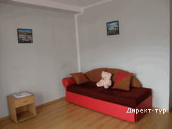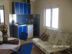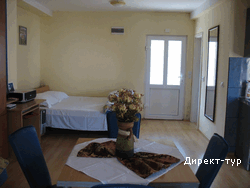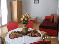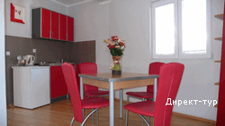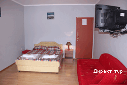 1 двухместный номер, 2 двухместных и 2 трехместных студио с кухней(возможно дополнительное место), 1 четырехместный апартамент. Уборка и смена полотенец – каждый третий день, смена постельного белья – через семь дней. Можно заказать завтраки или полупансион в ближайших ресторанах «L&M» или «Obala». Check in – 12:00, check out – 10:00. Для гостей предлагаются услуги лицензированного косметолога и массажиста (за доплату).