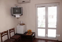 В DBL: Кондиционер, мини-холодильник, электрочайник, балкон, кабельное телевидение, телефон, душ.
