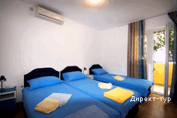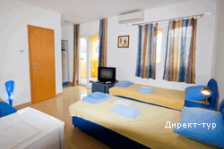 На вилле - 6 двухместных номеров, 3 двухместных студио, 1 трехместный номер и 1 трехместный апартамент. Вилла находится в укрытом от дороги месте, есть небольшая територия. Уборка проходит каждый день, смена полотенец - каждый третий день, смена постельного белья - через семь дней. Можно заказать завтраки или полупансион в ближайшем ресторане "L&M". Check in - 12:00, check out – 10:00.