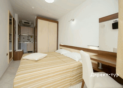 В STD: Кондиционер, кабельное телевидение, телефон, холодильник, рабочая зона, ванная комната с душевой кабиной, фен, терраса(вид на море не во всех номерах). В студии – мини-кухня.