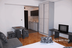 Новое пятиэтажное здание, оборудованное лифтом. Для размещения предлагаются - studio02 с возможностью дополнительной кровати и APP 05. Можно заказать завтраки или полупансион в ближайших ресторанах «L&M» или «Obala». Check in – 12:00, check out – 10:00.