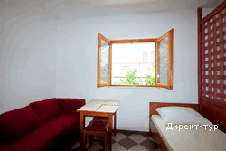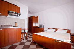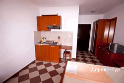 В STUD 02/03 PRIZ: первый этаж, перед входом в номер - терраса. Однокомнатный номер, французская и дополнительная односпальная кровати, кондиционер, телевизор, душевая кабина, кухонный блок, необходимая посуда.