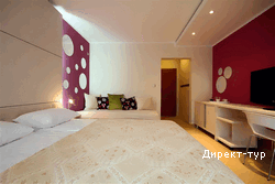 В STD: Кондиционер, кабельное телевидение (плазма), беспроводной интернет, мини-бар, терраса, ванная комната, фен, современный интерьер.