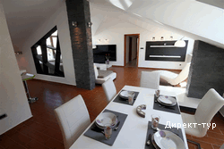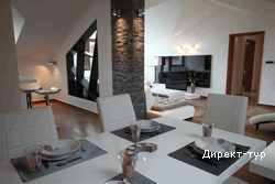 В APP: Спальня (1 или 2) с французской кроватью, гостиная с раскладным диваном. Кондиционер в каждой комнате, кабельное телевидение (плазма), домашний кинотеатр, беспроводной интернет, мини-бар, терраса, ванная комната, фен, современный интерьер.