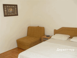 В DBL /TRPL: Два номера, перед входом в номер терраса со столом и стульями. В номере французская кровать и раскладное кресло, кондиционер, телевизор, интернет, Wi-Fi, кабельное телевидение, холодильник, электрочайник, балкон, ванная/душ.
