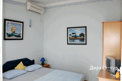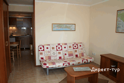 B APP 04: Один номер, перед входом в номер терраса со столом и стульями. В номере две комнаты (двери нет), с пальне французская кровать, в гостиной 2 раскладных дивана, кондиционер, телевизор, интернет, Wi-Fi, кабельное телевидение, кухня, холодильник, электрочайник, балкон, ванная/душ