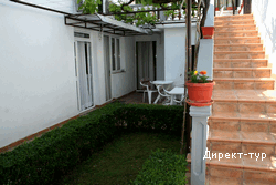 На вилле - 7 номеров, уютная зеленная территория с многолетними цветущими растениями и виноградником, летняя кухня для общего пользования, стол, беседка под виноградом. Уборка и смена полотенец - каждый третий день, смена постельного белья – через семь дней. В хозяйственной комнате - утюг и стиральная машина для общего пользования. Check in – 12:00, check out – 10:00.
